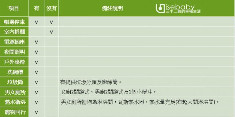 這個包場的場地好讚! 不但有規劃良好及堅固美觀的雨棚、還有桌椅可供現成使用,重點是這區直接就是一個半圓型的草地,既方便又獨立,難怪是大熱門營地啊!不過,想訂這種包場營位,就得提早半年前打電話預約哦!