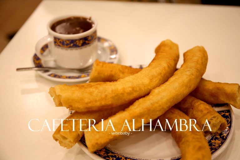 位於格拉納達市中心Bib-Rambla比布蘭布拉廣場旁的Cafetería Alhambra西班牙油條店,在Google Map擁有五千多則評論4分的高分!主要販售Porras粗油條,也有提供前菜、湯品、肉魚海鮮、PIZZA和PASTA等餐點,可以說是格拉納達最好吃的西班牙油條店,是來到格拉納達必吃的美食推薦;另外我在西班牙總共吃了3間西班牙油條店大評比,有來西班牙一定要來嘗試看看!