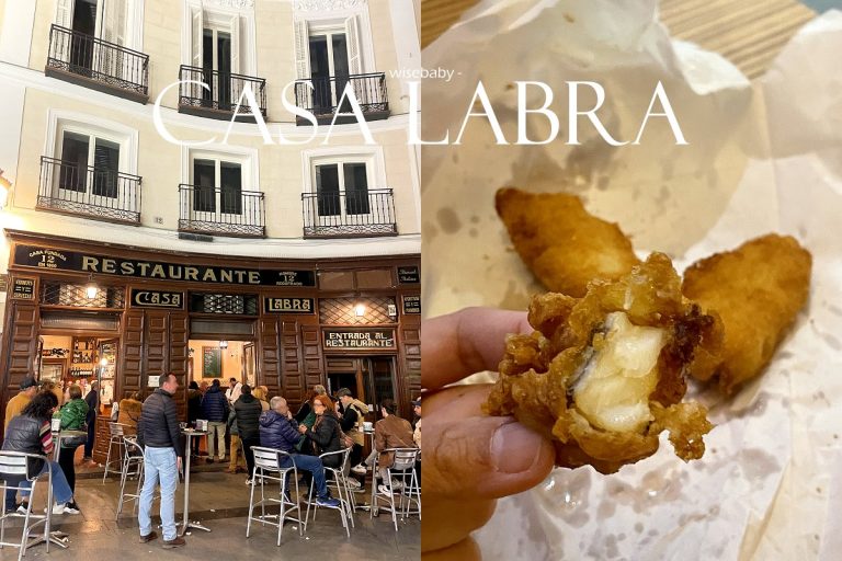 葡萄牙波多吃過Casa Portuguesa do Pastel de Bacalhau鱈魚球之家的鱈魚球,那麼在西班牙馬德里也有一間被Taste Atlas美食指南評選為全球100家最具特色餐廳第14名的Casa Labra,其最有名必點的就是Tajada de Bacalao炸鱈魚和Croqueta de Bacalao鱈魚球,前者是整塊鱈魚肉裹粉下去炸、後者是鱈魚泥混合了麵粉調味後以橢圓球型炸成鱈魚炸丸子,我們不喝酒、配上可樂實在是好享受!推薦列入馬德里必吃美食餐廳~