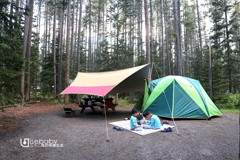 我們抵達加拿大庫特尼國家公園Redstreak Campground營地時正下著雨,也是等到雨小再開始搭帳,但是因為天氣陰雨,加上我們的帳篷沒有前庭,於是還是把天幕拿出來搭好客廳區。