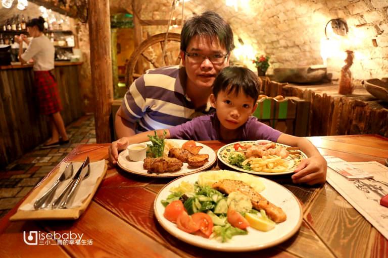 不過我們前一晚已經吃過想吃的Cepelinai馬鈴薯丸和kepta duona炸麵包條了,那麼在Forto Dvaras就來回不一樣的吧!我們2大1小總共點了豬排、鮭魚排和Ryan的雞肉串,最後含小費總共€18約台幣$600左右。