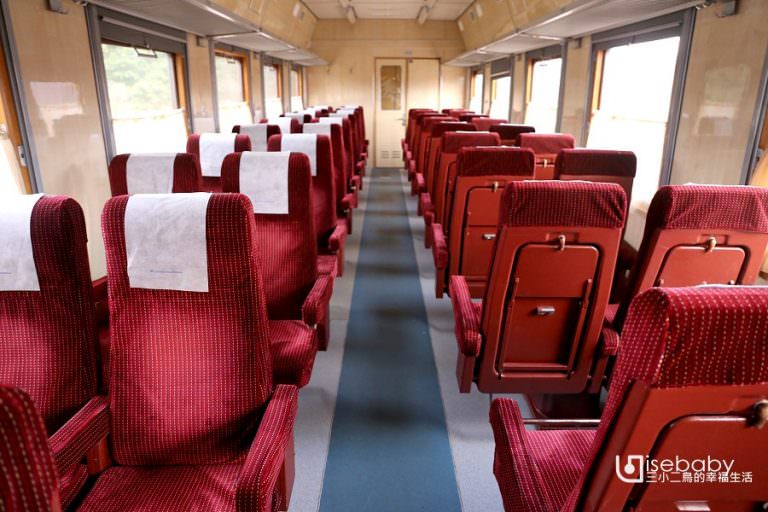 走進車廂,兩旁各2+2紅色絨布及紅色系座椅,很像新穎一點的普通車或復興號。