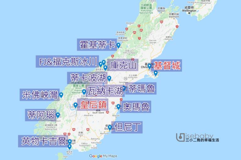 📌皇后鎮ZQN進出:Queenstown皇后鎮 ➝ Te Anau蒂阿瑙 ➝ Milford Sound米佛峽灣 ➝ Invercargill英物卡吉爾 ➝ Dunedin但尼丁 ➝ Oamaru奧瑪魯 ➝ Mount Cook庫克山 ➝ Lake Tekapo蒂卡波湖 ➝ Christchurch基餐城 ➝ Hokitika霍基蒂卡 ➝ Franz Josef Glacier法蘭士·約瑟夫冰川 ➝ Fox Glacier福克斯冰河 ➝ Lake Wanaka瓦納卡湖 ➝ Christchurch基督城 ➝ Queenstown皇后鎮。