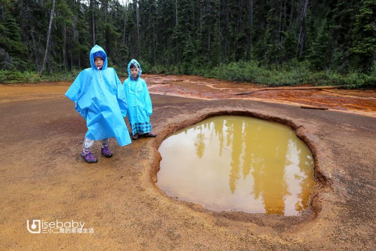 由於Kootenay National Park國家公園相對Banff和Jasper冷門,再加上需走一小段步道並跨過載滿冰川磧泥的弗利姆河,才會抵達Paints Pots顏料池,所以一路上幾乎沒什麼遊客,眼前的青翠美景等於是我們一家自己獨享了~