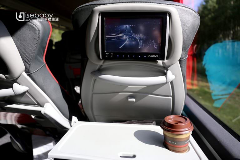 座位和飛機一樣有螢幕,還有Free Wi-Fi、插座及熱飲,太豪華了!