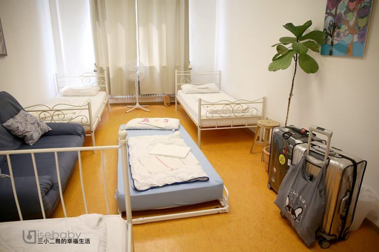 我們把床單舖好、加床往2個單人床的中間推,三小1人1張單人床又睡一起倒也剛剛好互不干擾,房間正中間還有空位可以走動或擺放行李。
