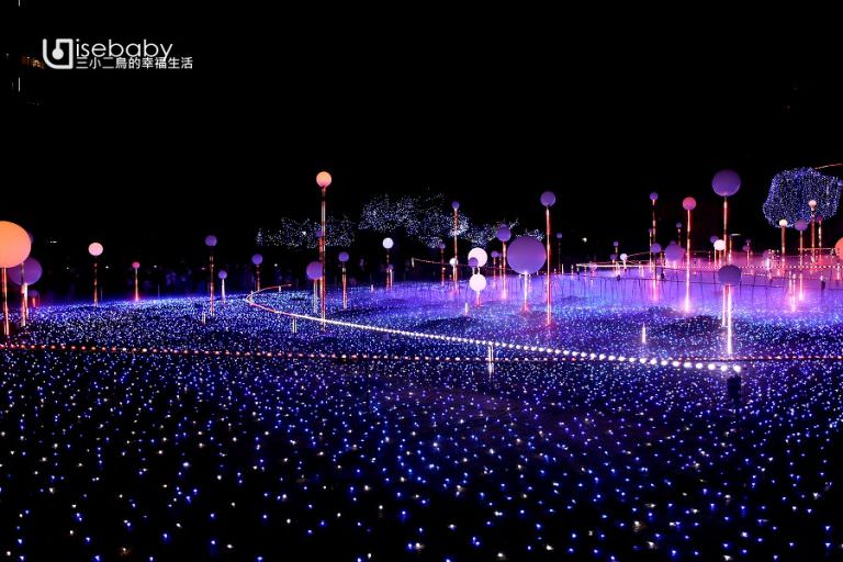 我由高處往草坪上望去,在2,000平方公尺的區域裡裝置了19萬個燈泡及100個氣球,由不同高度的氣球和拋物線軌道,在12分鐘輪一次的音樂聲中光線的流轉,表達了宇宙從星星誕生到盡頭的星塵。